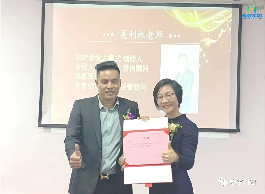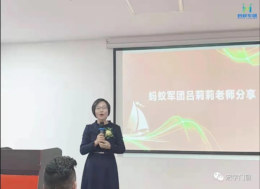 董事長陳新先生、螞蟻軍團(tuán)呂莉莉老師以及宏宇全體家人參加會議。
